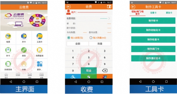可實(shí)現(xiàn)移動(dòng)便捷的收取水電費(fèi);可實(shí)現(xiàn)用戶卡補(bǔ)卡功能;可實(shí)現(xiàn)換表功能;可實(shí)現(xiàn)制作工具卡功能;支付方式支持微信支付,支付寶支付和銀聯(lián)支付;